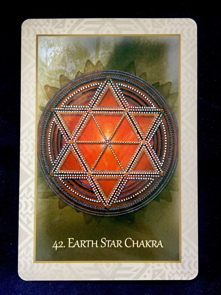 This mandala brings you the aligning energy of the Earth Star Chakra. This magnetic star anchors your universal self, deep within the earth’s core. In addition, this chakra is key in accessing your past lives, understanding your current life and drawing upon the wisdom of your future self. Aligning this chakra is aligning to your inherent, infinite self and that of the collective consciousness, to bring a feeling of wholeness… The Earth Star Chakra mandala also guides you in clearing your energy field on all levels.”