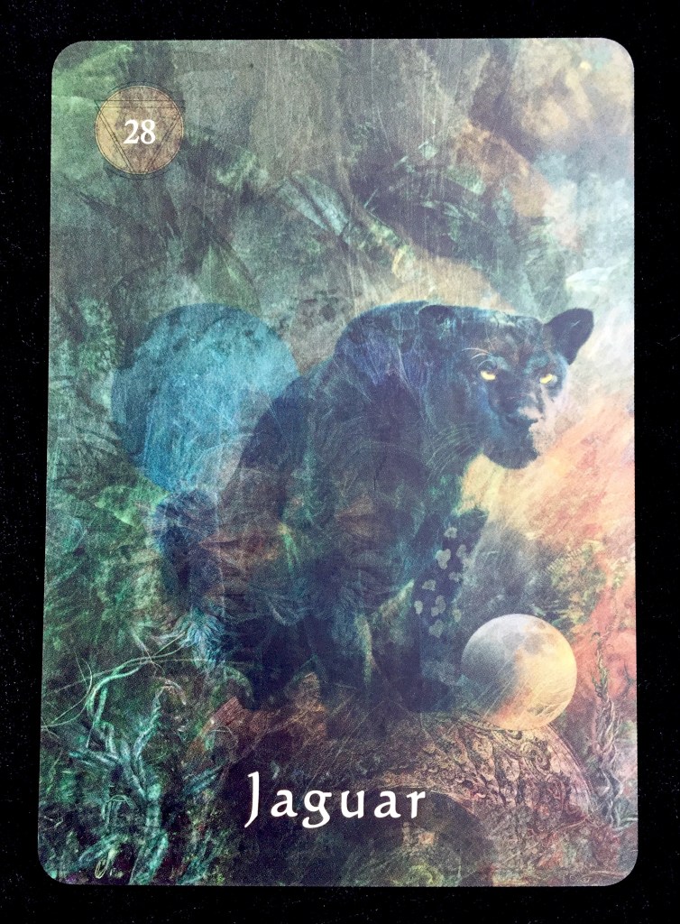 “Jaguar calls you to explore beyond the walls that confine you, to go outside your normal routine, to push your limits and boundaries. She is delivering an invitation from your own future to investigate the unknown, to venture into the mystery…”