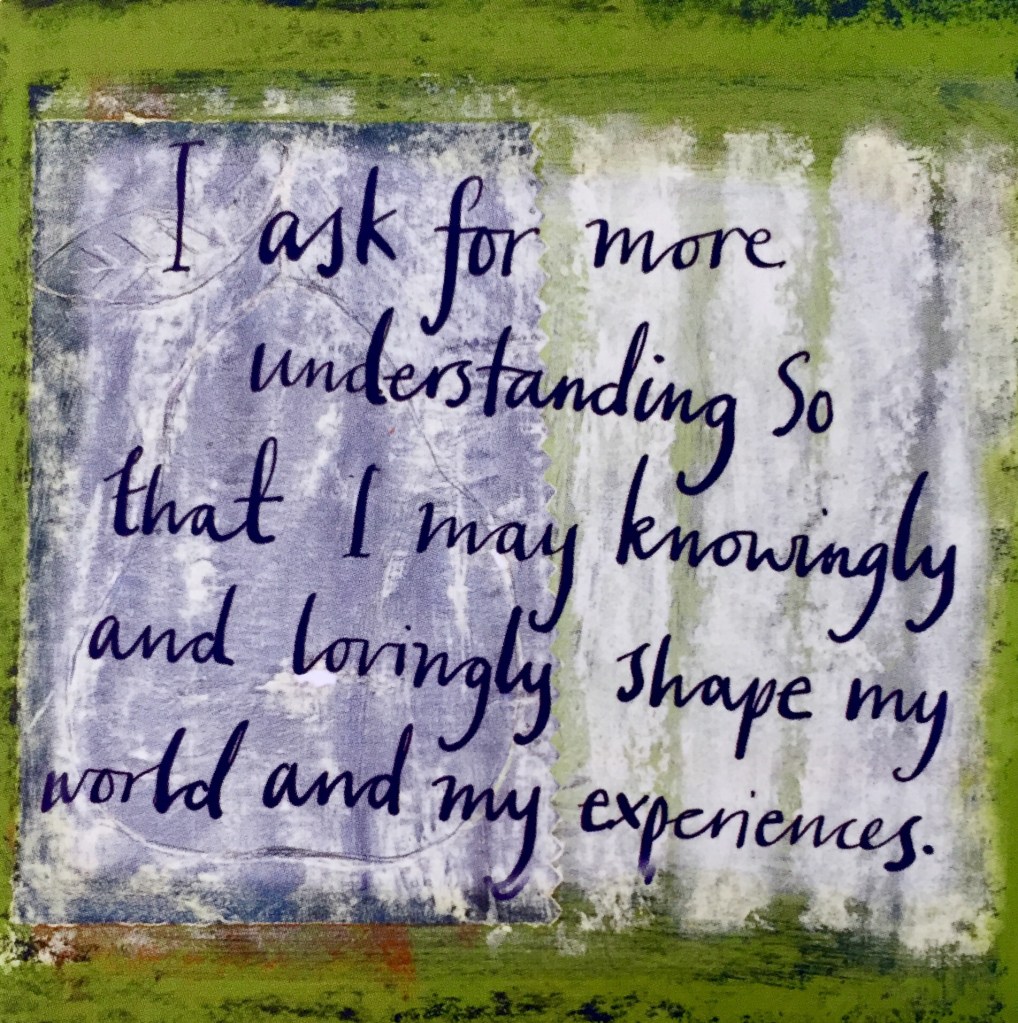“I ask for more understanding so that I may knowingly and lovingly shape my world and my experiences.”