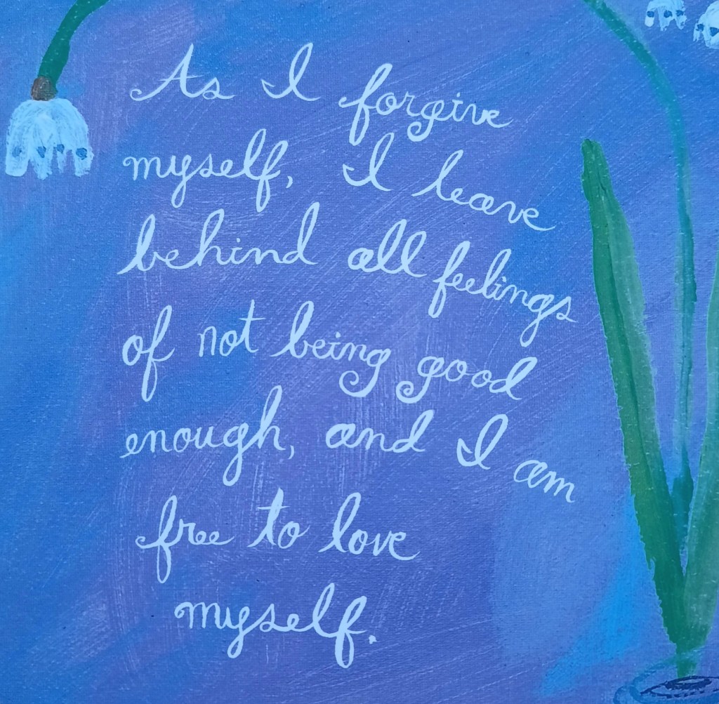 “As I forgive myself, I leave behind all feelings of not being good enough, and I am free to love myself.”