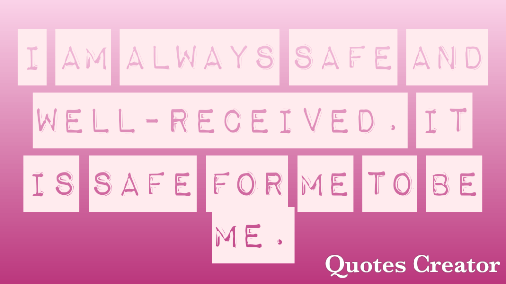 This affirmation is helpful for social anxiety and anxiety in general. Going out in the world and interacting with people can be scary and intimidating, especially these days. Even interacting with friends and family can be cause for anxiety. Affirming and believing that you are always well-received can you give you comfort that no matter how anxious you feel and no matter what happens in a situation, your highest intentions shine through and people are more likely to take you as you are or feel at ease around you. You are always safe. This also gives peace of mind if you are someone who replays and rethinks every interaction, thinking of ways it could’ve gone better or something you should or shouldn’t have said. When you can trust that you are always well-received, there is no need to agonise.