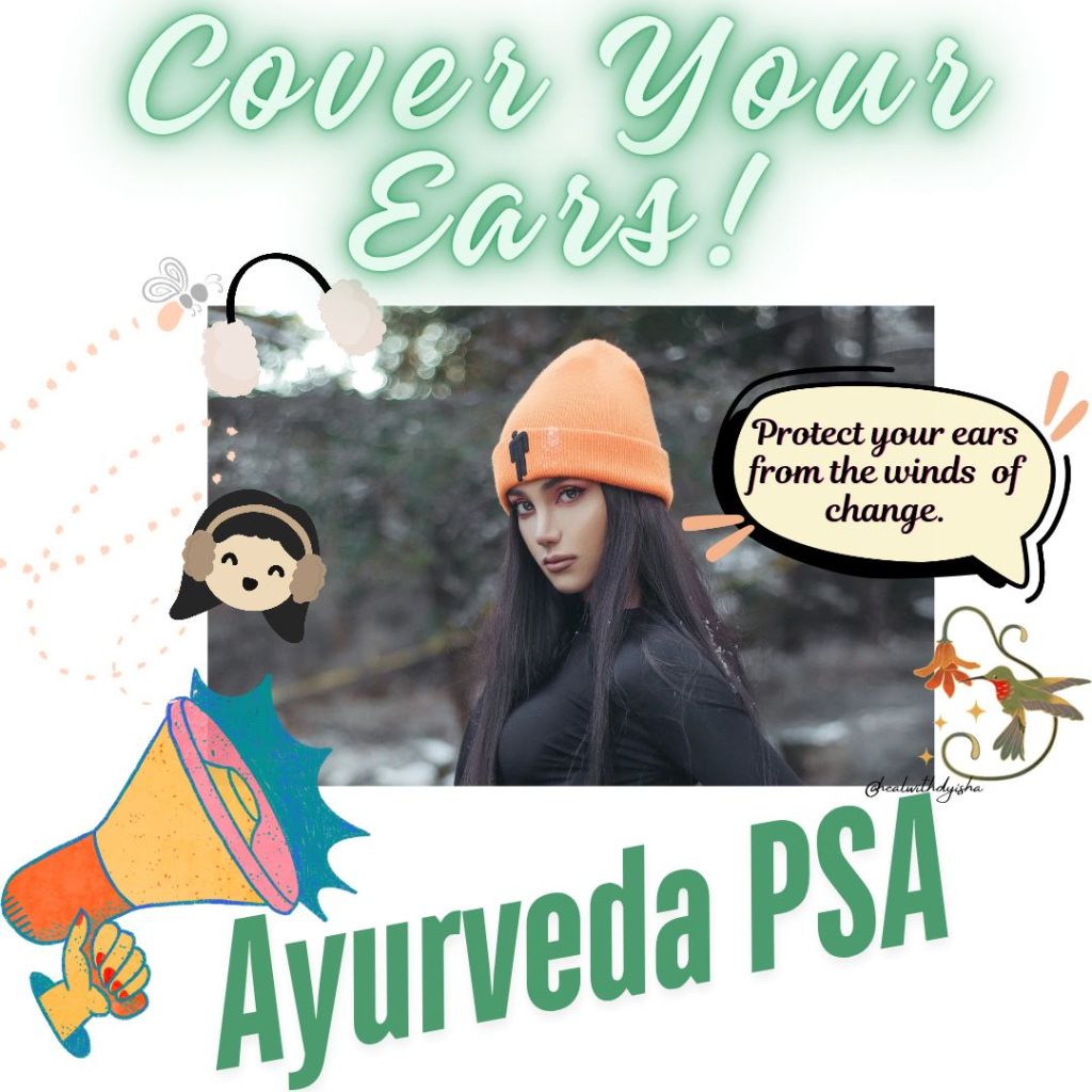 Wind = Vata in Ayurveda. Autumn and change = Vata. Vata out of balance can cause all types of disturbances. As the weather fluctuates, especially if you are staying outside and active, COVER YOUR EARS.